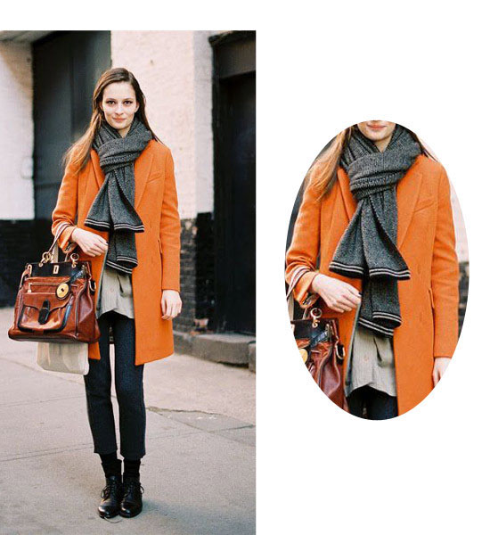 方巾的系法用在圍巾上更有型,像這樣深沉的同色搭配用這種系法去掉沉悶。