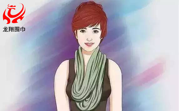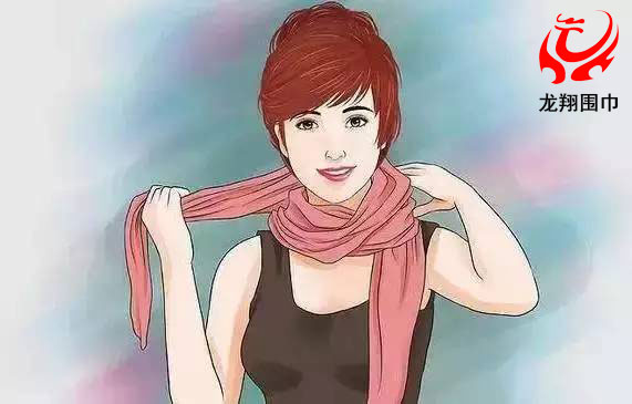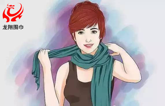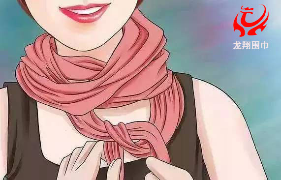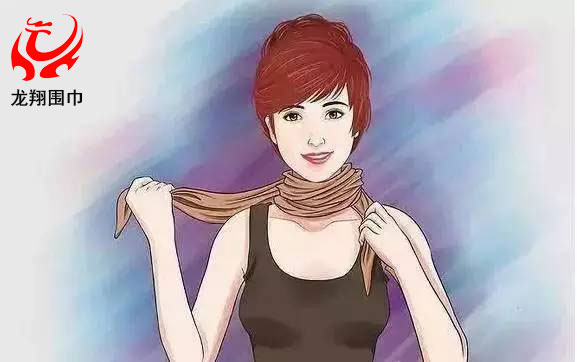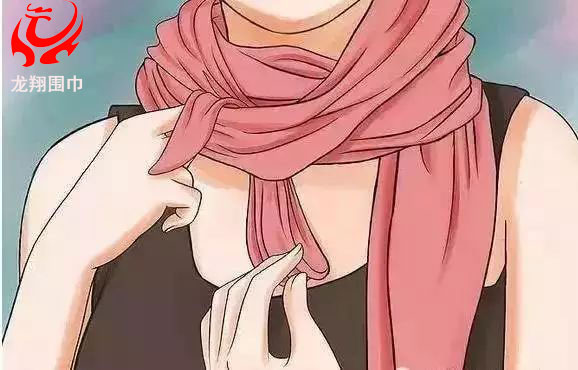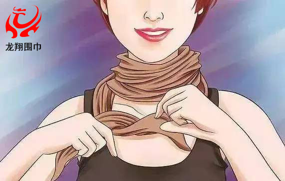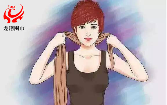 2、把較長(zhǎng)的那一邊朝一個(gè)方向在脖子上繞兩圈。