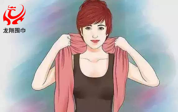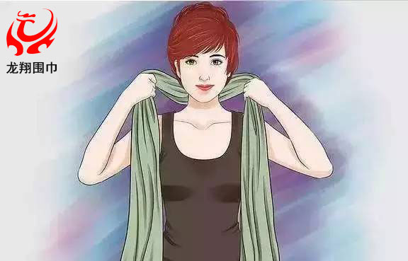 2、將較長(zhǎng)的一端繞過脖子,但不要完全繞過去,而是讓這一部分垂在背上。