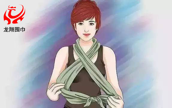 2、將較長(zhǎng)的那一端繞過脖子一圈。