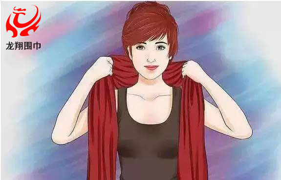 1、讓圍巾自然垂于胸前,兩端長(zhǎng)度相近。