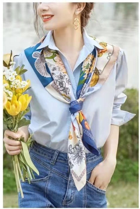 春季,萬物復(fù)蘇,春意盎然;夏季,炎熱清爽,簡約穿搭,所以明亮系的絲巾更加的百搭亮眼。在追求清爽的春夏季節(jié),絲巾更多的不是保暖而是以造型功能為主,所以,在選擇絲巾上,更加注重的是絲巾的材質(zhì)和花色。