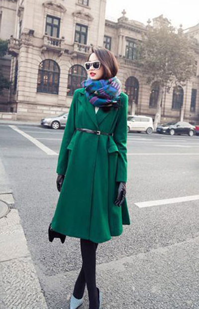 墨綠外套,可以配花色艷麗些的圍巾,最好是絲巾,因為墨綠色一般給人的感覺較高貴,不要太素了。白色的比較好配顏色,一條長的、較寬的披巾,酒紅的最好看。還可以是一條鮮紅的絲巾做裝飾。