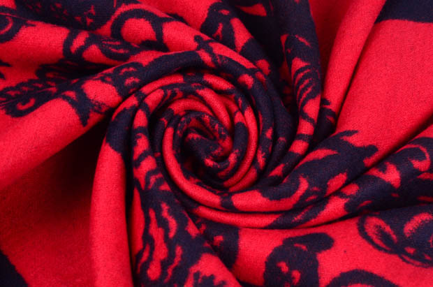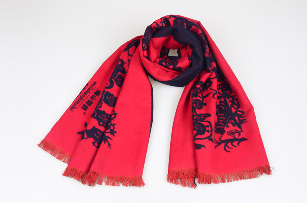 剪紙的圖案通過提花的形式表現(xiàn)在圍巾上,加上合適的配色,適中的流蘇,類似羊絨手感的面料,讓圍巾?yè)碛袀鹘y(tǒng)色彩的同時(shí),又不失時(shí)代的美感。