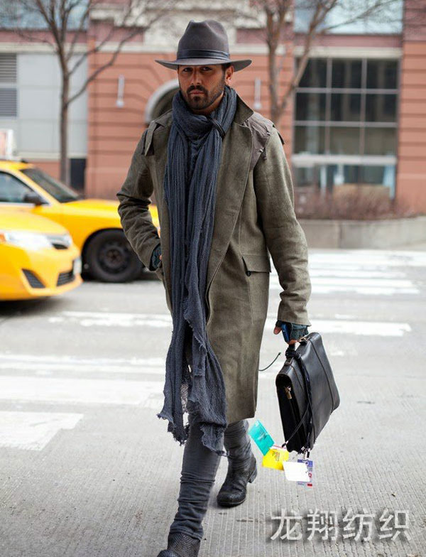 男士圍巾廠家龍翔紡織就為大家搜集了一些關(guān)于流行男士長圍巾的街拍: