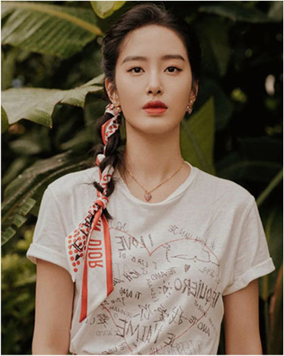 把絲巾編進(jìn)麻花辮里,單只和雙支編起來都很好看,這樣的編發(fā)適合長條細(xì)絲巾。