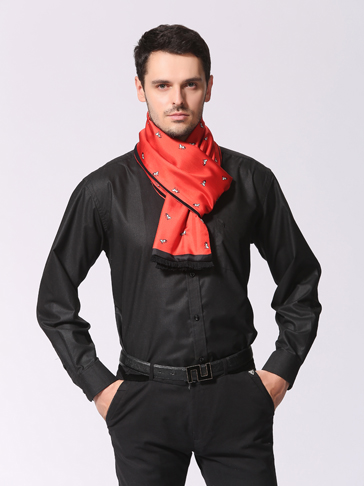 在地鐵站,你會(huì)發(fā)現(xiàn)不少時(shí)尚男士已經(jīng)披上了圍巾,正裝搭配雙面圍巾正流行于這些時(shí)尚的上班族。今年的男士圍巾中出現(xiàn)了一種十分特別的由真絲拉絨和絲綢組合的圍巾,一面是真絲拉絨的溫暖柔和,一面是絲綢的光亮細(xì)膩,隨意圍在男士的頸間,就能在低調(diào)中顯出高貴的品質(zhì)。在即將來(lái)臨的新年約會(huì)中,如果你是想以正裝出席的話,那不妨選了一款雙面圍巾。在色彩方面,低調(diào)的凈色和深沉暗紋都會(huì)在不張揚(yáng)中顯出個(gè)人的品位。而選擇與身上的服裝同色系的圍巾可謂入門(mén)級(jí)搭配,比如黑白格、海軍條紋真絲圍巾絕對(duì)是百搭。當(dāng)然,如果要來(lái)點(diǎn)出位的創(chuàng)意,則可以選擇類似女性披肩的套頭圍脖,這種套頭的設(shè)計(jì)避免了披肩的女性化和拖沓感,絕對(duì)給你一個(gè)意外的驚喜。