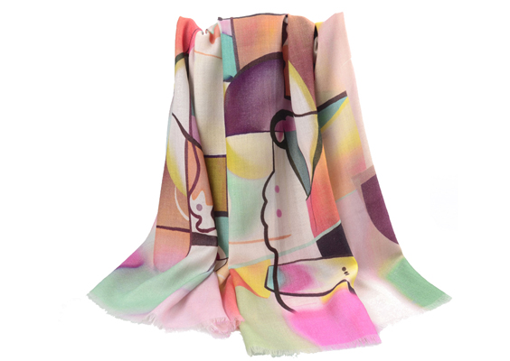 還有一款漸變色的羊毛圍巾,它是春秋季現(xiàn)代年輕人的百搭款。羊毛噴繪圍巾花型多樣,色彩艷麗,是中老年婦女的首選。