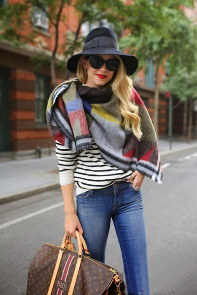 基本款的條紋毛衣和牛仔褲的搭配未免過于保守,雖不用擔(dān)心會出錯(cuò)卻少了些兩點(diǎn),加上一款時(shí)尚圍巾就不同了,隨意搭上即可化身時(shí)尚達(dá)人,如果再來帽子墨鏡大包包,那種霸氣將勢不可擋,潮流焦點(diǎn)非你莫屬。