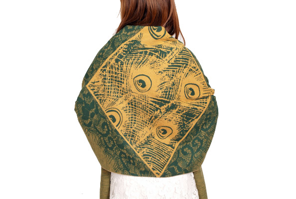 從二十一世紀(jì)以來(lái),羽毛裝飾被設(shè)計(jì)師和社會(huì)名流所重視,出現(xiàn)在各種時(shí)尚社交場(chǎng)合。龍翔紡織設(shè)計(jì)師了解到孔雀羽毛不僅僅象征著圣潔,更是一種愛(ài)情的象征。孔雀顏色色彩斑斕,尤其是它開(kāi)屏之時(shí),更是光彩照人。因此設(shè)計(jì)出一款以孔雀羽毛為主題的真絲圍巾。圍巾顏色選取孔雀身上的黃色和墨綠,顏色上的沖突給人一種眼前一亮之感。古有傳說(shuō):孔雀羽毛落誰(shuí)家,誰(shuí)家興旺。因此龍翔紡織設(shè)計(jì)師也希望此款圍巾可以給人帶去幸福吉祥。