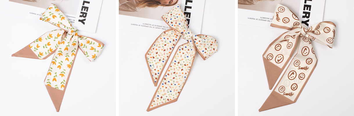 而且佩戴和系法多種多樣,不管是自然垂順或是打一個精致的蝴蝶結(jié),都能為造型增添別樣風(fēng)采。既可以正常系在頸間,還可以當(dāng)發(fā)帶、choker使用,甚至裝飾包包也完全ok,絕對的時尚百搭款。