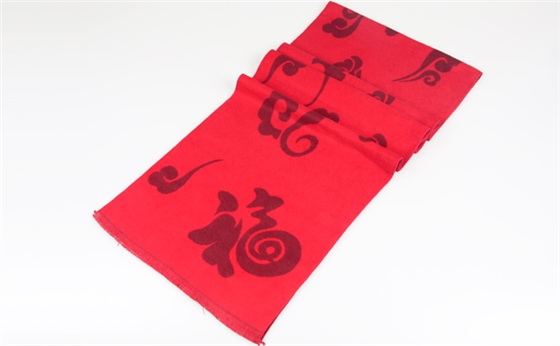 新年紅色圍巾設(shè)計上提花的福字祥云,福字展示的新年祝福簡潔明了,搭配濃郁中國特色的祥云做點綴,色彩亮麗,貼切過年的氣氛,喻義吉祥。新年紅色圍巾算得上是喜氣又不俗氣的紅色單品首選。