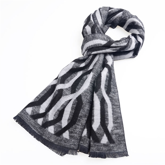 一根線條可以成為一條圍巾中的重要因素,有它自己的一種生命、一種表現(xiàn),以及個(gè)性特征。在自然和生活中存在著各種各樣的線條,水平線平靜又廣闊;斜線極具空間感;曲線流暢優(yōu)美;螺旋線動(dòng)感十足。新昌龍翔設(shè)計(jì)師設(shè)計(jì)的線條圍巾主要突出線條,在線條中突顯圍巾的美感。圍巾上線條的形狀不同,排列疏密不同經(jīng)人不同的視覺(jué)節(jié)奏,有的明快、有的柔和、有的急劇、有的緩慢。