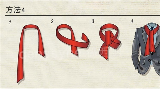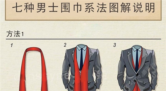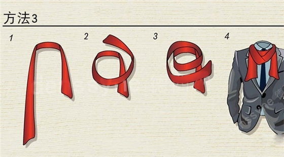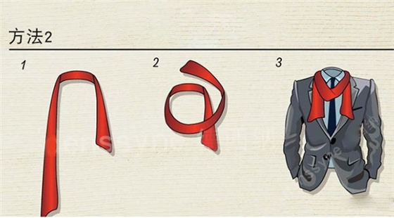 第一種方法,掛脖式。主要搭配西服 大衣,保暖的話這種系法不夠好。但裝飾肯定就是最好的。