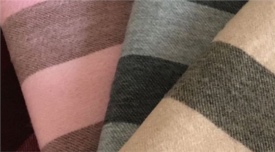 適用于春秋季節(jié)的方中有緞格絹、雙縐綃、斜紋綢等品種。長(zhǎng)圍巾兩端帶穗,穗須有織穗、裝穗和拈穗??椢锝M織有平紋、盟斜紋、蜂巢和重經(jīng)組織等。機(jī)織和針織圍巾中均有拉毛圍巾,是將巾坯經(jīng)鋼絲起毛機(jī)或刺果起毛機(jī)拉毛而成,表面絨毛短密,手感厚實(shí),提高了織物的保曖性能。