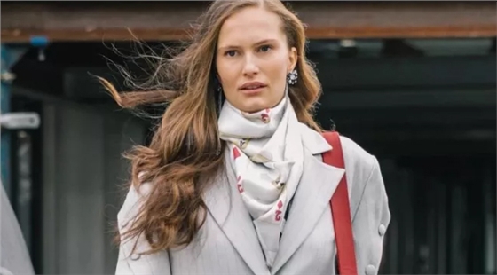 如果想看起來干凈利落,走極簡風,建議優(yōu)先搭配小圍巾。比如窄長的純色經(jīng)典羊絨圍巾搭配純色大衣,就是非常不錯的選擇。如果想看起來優(yōu)雅有內涵,利用絲巾來點綴中性色大衣也很顯氣質。