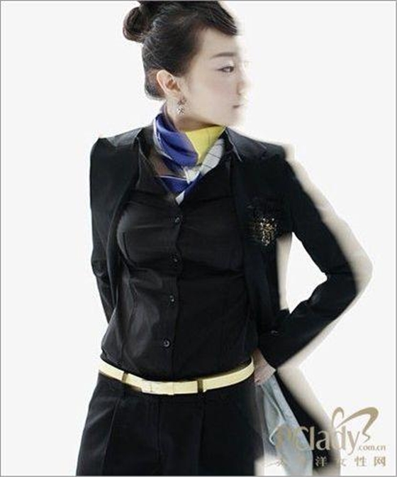 時(shí)尚點(diǎn)評(píng):黑色的襯衣加上西褲的職業(yè)套裝,將嚴(yán)肅感散發(fā)到極致,腰部的白色細(xì)腰帶雖然也夠搶眼但總有種不敢靠近的距離感。如果你的職位就需要和同事職員之間有距離感那這身裝扮可以得滿分,但你希望既有距離感又有稍微的親和力,那么加入一條絲巾吧。傳統(tǒng)的系法不會(huì)打破你工作的原則,而絲滑的質(zhì)感又帶有一絲飄忽不定的溫柔氣質(zhì)。