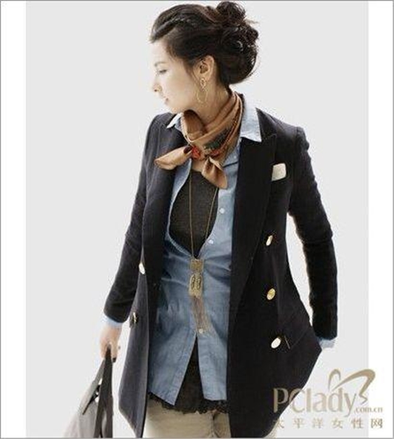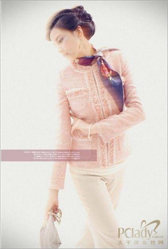 時(shí)尚點(diǎn)評(píng):既然有嚴(yán)肅感的主管當(dāng)然也有親和力的主管,屬下的職員喜歡與親切的你接近,當(dāng)然工作中還是要展現(xiàn)出自己應(yīng)有的威信和原則。粉色系的上衣外套加上花邊的裝飾將干練的你展現(xiàn)出一絲溫柔感,而深藍(lán)色的絲巾能夠表現(xiàn)出低調(diào)的華麗感,也平衡了柔和增加了主管的嚴(yán)肅。