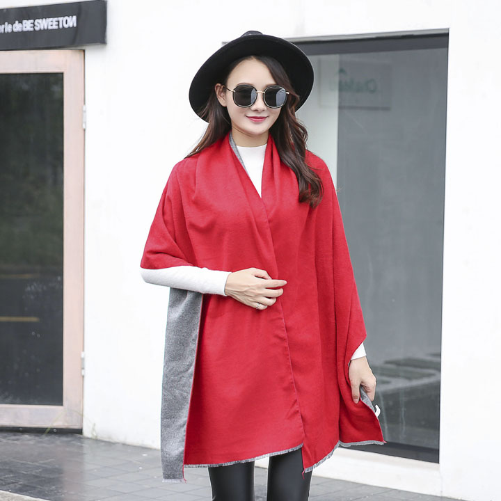 純色雙面披肩